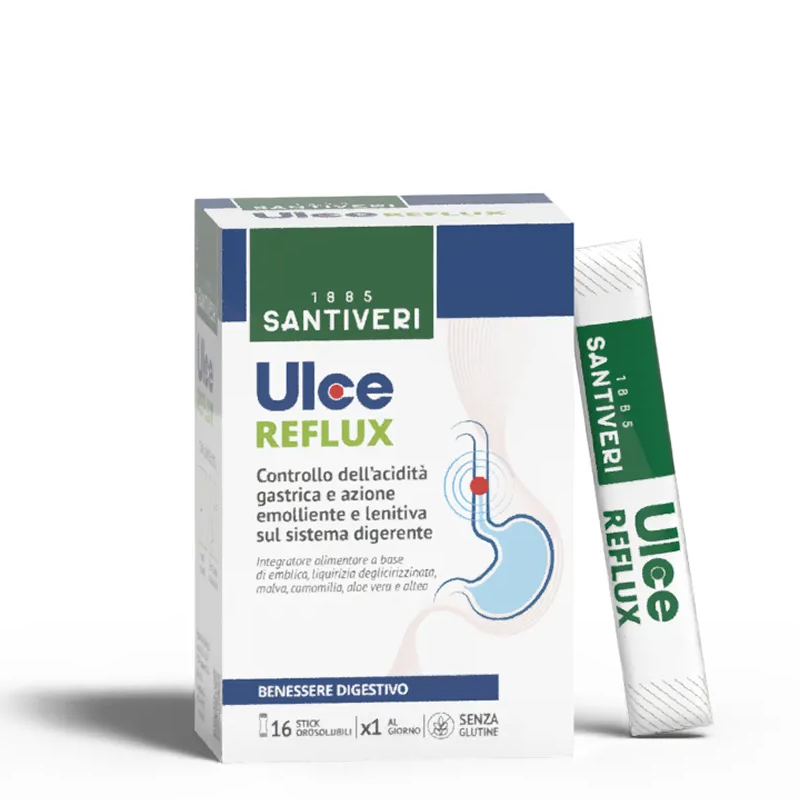 Ulce Reflux rappresenta l'innovazione Santiveri nel controllo dei Disturbi causati dall'eccessiva produzione di acido gastrico che risale verso l'esofagodisturbi da reflusso gastrico. Questa formula avanzata in pratici stick combina tradizione erboristica e moderna ricerca scientifica per offrire un sollievo rapido ed efficace.