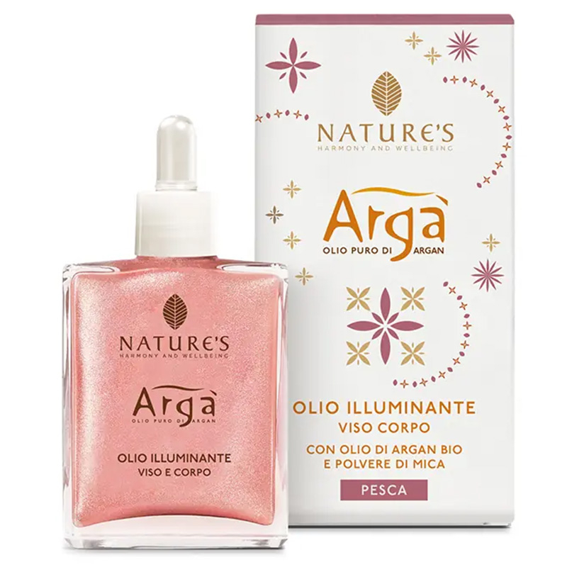 Vuoi una pelle incredibilmente luminosa e vellutata? L'Olio Illuminante Pesca Nature's unisce il profondo nutrimento dell'Olio di Argan Biologico a preziosi micro-cristalli di Mica dorata. Una texture setosa a rapido assorbimento per far splendere viso e corpo ogni giorno, senza mai ungere.