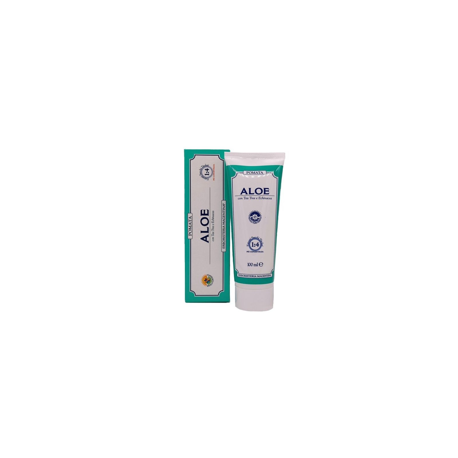 La pomata Aloe è stata studiata per avere un duplice effetto: lenitivo grazie all'unione di Aloe, olio essenziale di Tea Tree, Bergamotto e Limone e nutritivo grazie all'unione di Aloe, con Olio di Rosa Mosqueta, Olio di Mandorle Dolci, Burro di Karitè e Vitamina E che insieme ridanno e aiutano a mantenere lucentezza, elasticità e tono a tutta la pelle del corpo.