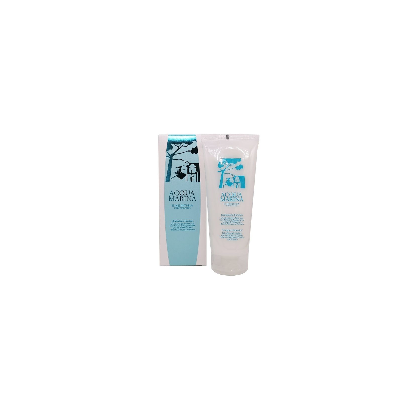 Emulsione Emulsione-gel effetto seta con Polvere di Acquamarina, Estratti di Malachite e Betulla Africana e Pullulano.