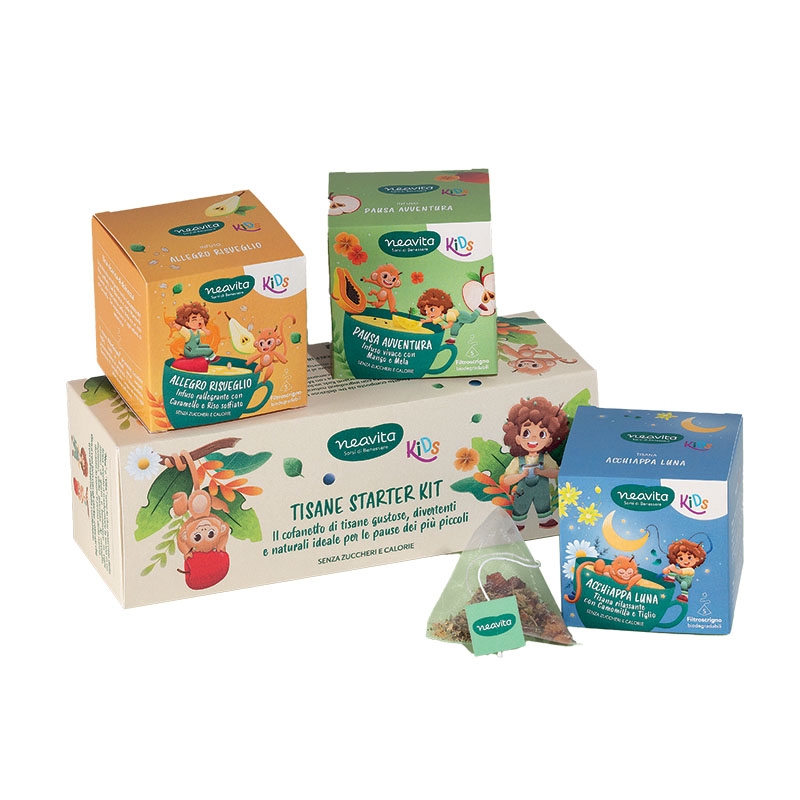 Il Cofanetto Starter Kit di Neavita è l'ideale per introdurre i bambini al mondo delle tisane in modo sano, gustoso e divertente. Scopri di più e acquista il tuo cofanetto oggi stesso!