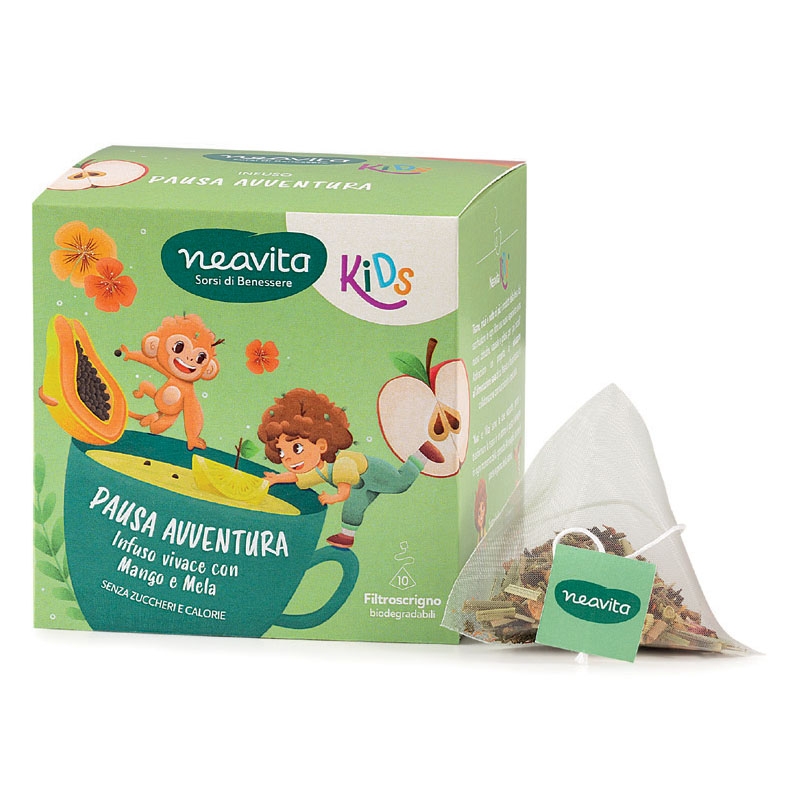 L'Infuso "Pausa Avventura" di Neavita KIDS è una miscela vivace pensata per i bambini. Confezionato in pratici filtri, questo infuso unisce la dolcezza del mango e della mela, offrendo una bevanda leggera e rinfrescante. Ideale per una pausa pomeridiana, aiuta i più piccoli a ricaricare le energie durante le loro avventure quotidiane.