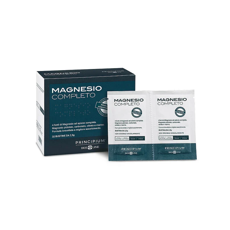 Il massimo della praticità contro stanchezza e crampi. Principium Magnesio Completo in bustine monodose contiene 4 fonti di Magnesio organico (Pidolato, Citrato, Marino, Carbonato) per un assorbimento rapido e senza fastidi. Ideale da portare in borsa o in viaggio.