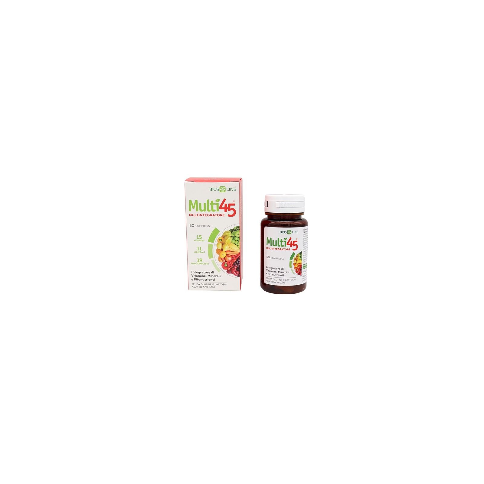 Multi45 è un integratore alimentare completo di vitamine, minerali ed estratti vegetali: una vera marcia in più, ideale quando è richiesto un apporto supplementare di questi componenti. Multi45 è una valida integrazione in caso di alimentazione poco curata, o per la ripresa durante o dopo una convalescenza.